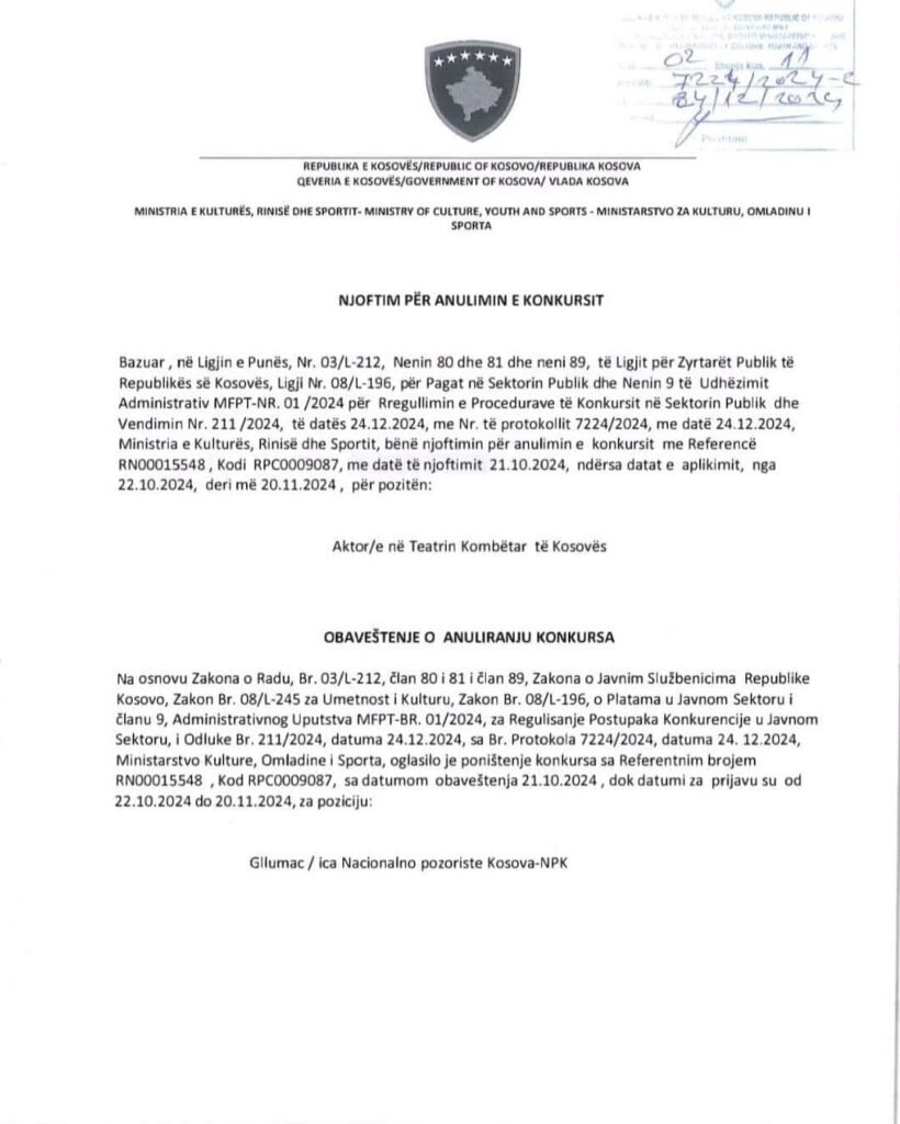 Por, gjithçka mori një kthesë të papritur. Përgjegjësit e audicionit njoftuan anulimin e rezultateve, duke deklaruar se “kanë vendosur kritere të tjera” që nuk ishin përfshirë në konkursin fillestar. Ky veprim ka ngjallur pakënaqësi dhe zhgënjim të madh mes aplikantëve.
