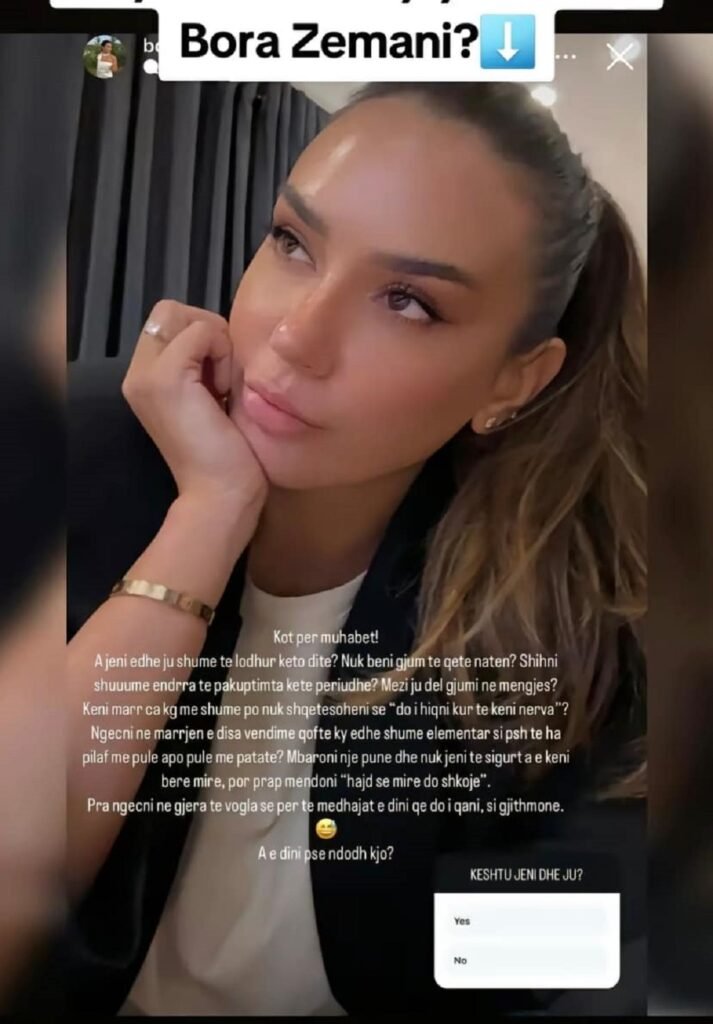 Ajo përmes një statusi ka treguar “A jeni edhe ju shume te lodhur këto dite? Nuk bëni gjumë te qetë natën? Shihni shume ëndrra të pakuptimta ketë periudhë? Mezi ju del gjumi në mëngjes? Keni marr ca kg me shume po nuk shqetësoheni se “do i hiqni kur te keni nerva”?