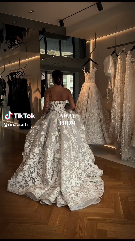 Në një video të saj në Tik Tok, Rina Zati shihet e veshur me një fustan të bardhë madhështor.