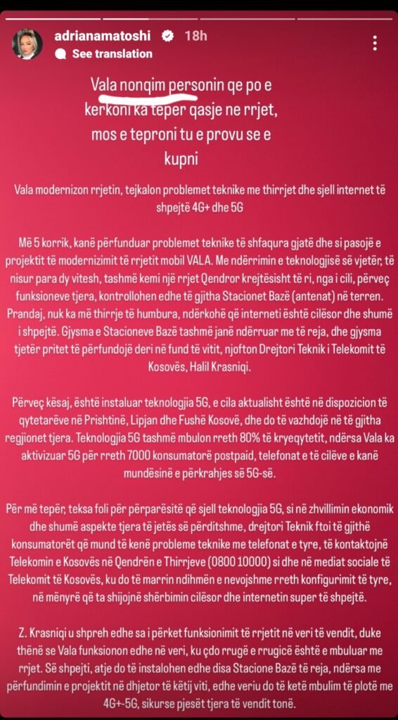 Vetëm Prishtina Post e vërejti: Deputetja e Republikës së Kosovës, Adriana Matoshi, bëri një gafë në një postim në Instagram Story duke ngatërruar termin “Vala nëntëqind ” me “nonqim”. Ky gabim deri tani ka kaluar pa u vënë re nga publiku i gjerë, por Prishtina Post e ka kapur këtë detaj.Çfarë mendoni për këtë ngjarje? A duhet të jenë politikanët më të kujdesshëm në përdorimin e fjalëve në rrjetet sociale? Na tregoni mendimin tuaj!