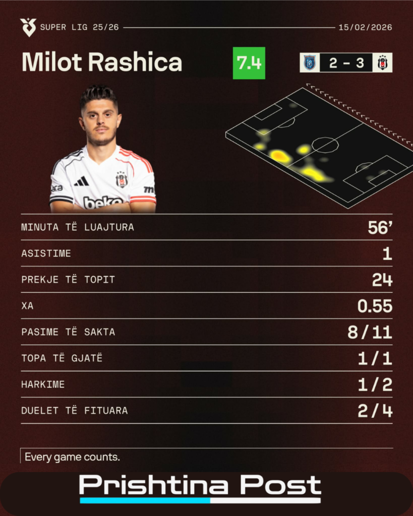 Milot Rashica po tregon javë pas jave se është një nga lojtarët më të rëndësishëm në skemat e Besiktasit. Përfshirja e tij në lojë gjatë pjesës së parë i dha një dinamikë tjetër sulmit të “Shqiponjave të Zeza”, duke krijuar raste të njëpasnjëshme dhe duke mbajtur në presion mbrojtjen kundërshtare.