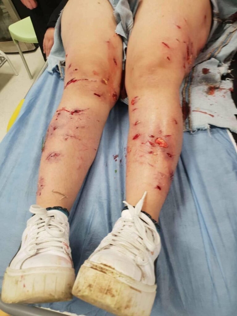 Indeskonline ka siguruar një foto të gruas e cila u sulmua, ku shihen plagë të shumta në këmbët e saj.