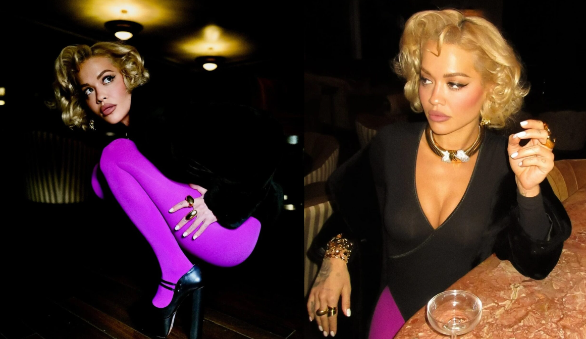 Në imazhet e publikuara, Rita shfaqet me një pamje frymëzuar nga eleganca klasike e viteve ‘50 — me flokë të valëzuar, grim të rafinuar me ‘eyeliner’ të theksuar dhe buzë rozë të buta.