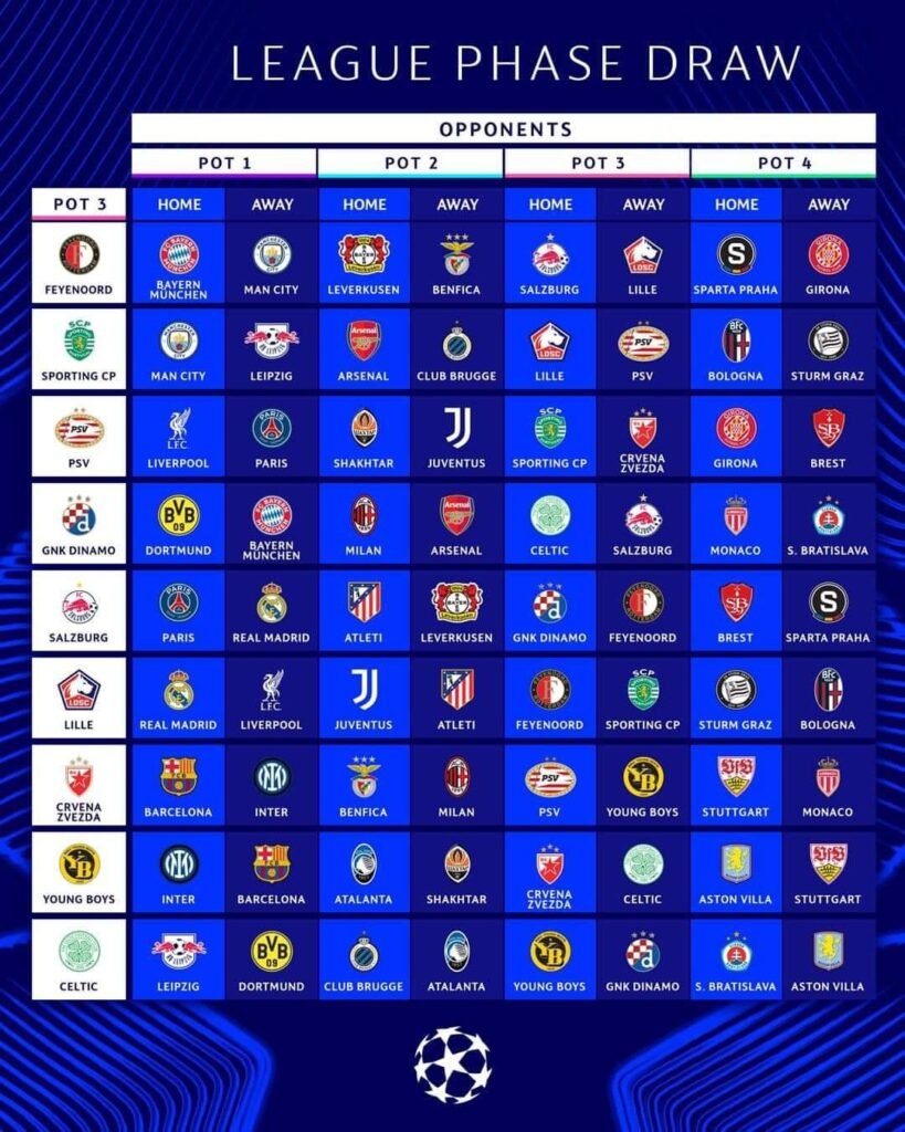 Ja ku i keni të gjitha 189 ndeshjet e fazës së ligës të përmbledhura më heret kan qenë 6 lojë, tashmë është bërë rregull, të luajnë 8 lojë ndërsa tashme nuk ka lojë kthyese, jasht a mbrenda vendos kompjuteri!