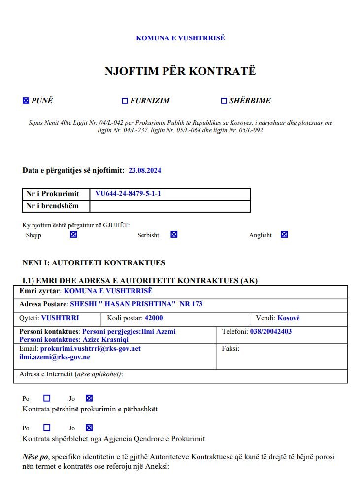 Mirëpo një kompani që kishte konkurruar për këtë tender, është ankuar duke pretenduar se ky tender është kurdisur nga Komuna e Vushtrrisë për kompani të caktuara dhe kufizohet konkurrenca.